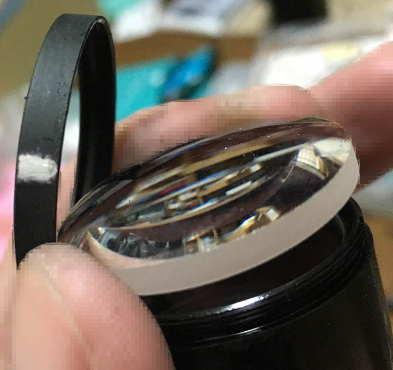 Apply a drop of alcohol to dissolve the seal before you open this. Be sure not to damage or misplace the shim, it’s used to adjust the front focus.