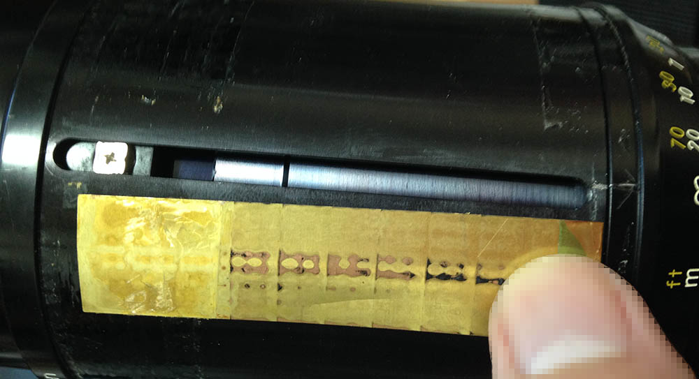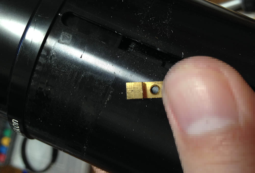 Remove the tapes to remove this brass strip, it covers the slot for the zoom key. This will expose the zoom key, carefully extract and don’t forget to mark its direction. It slides within the slot, don’t overtighten its screw but don’t leave the screw too-loose.