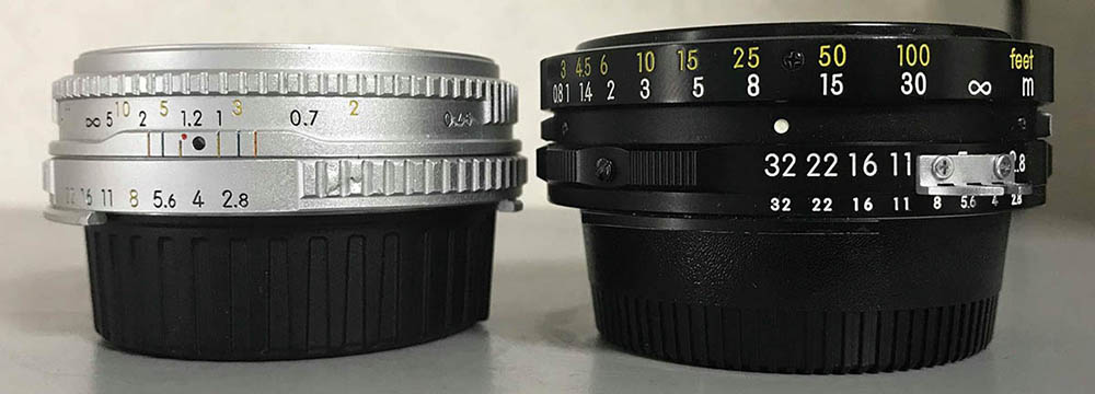 This lens is so thin it makes the Nikkor 50mm f/1.8 Ai-S look bulky. The only Nikkor that is thinner than this is the Nikkor 45mm f/2.8 Ai-P. This lens was engineered differently from other Nikkors since the helicoids doesn’t have a linear turn rate. It had to do this since light decays in a non-linear fashion (inverse-square), this had to follow how light decays because it was made to sync with the output of a flash gun.