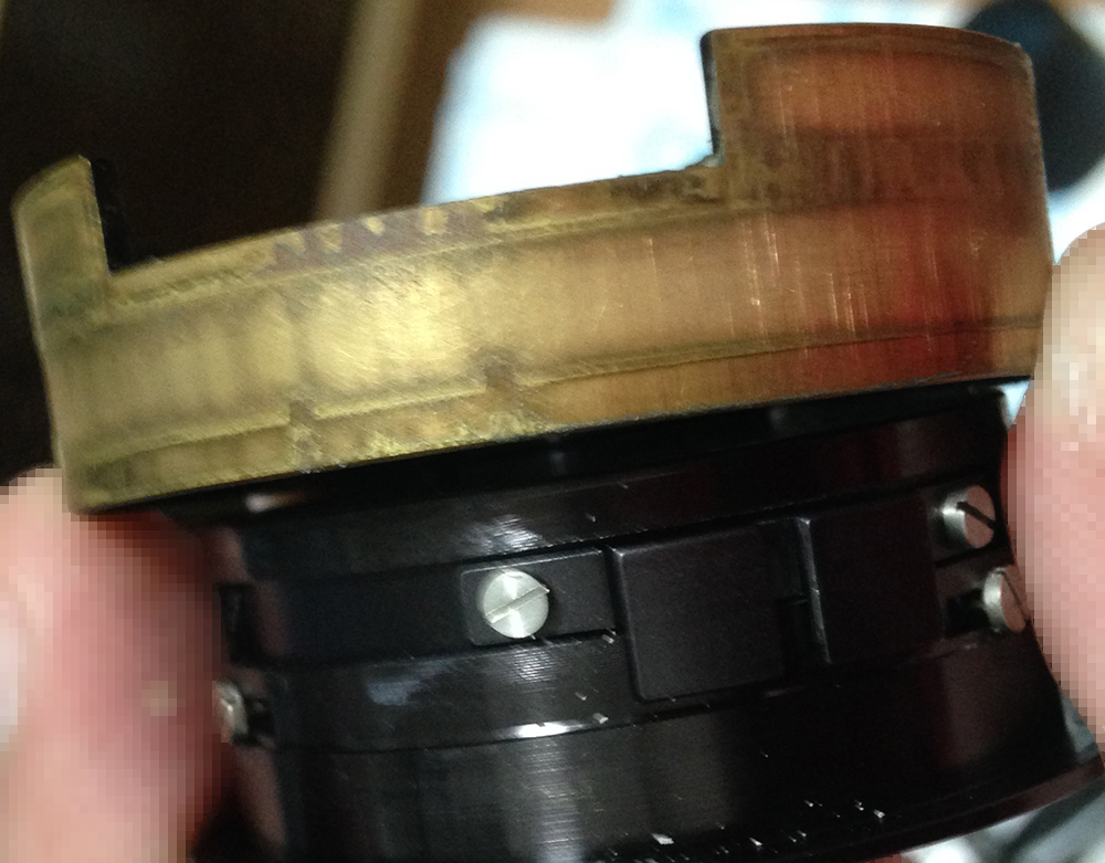 And off it goes. Notice that the groove and how it is not linear (exponential). It had to be this way because of the inverse square law and how that affects how light decays. If this is linear the change will never match the light that the flash is outputting. This is the reason why this lens has a cam instead of proper (real) helicoids. Now you know.