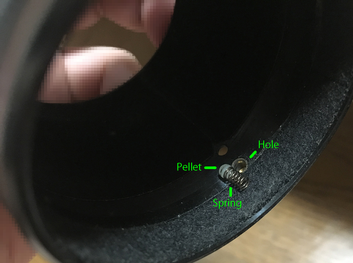 The mechanism consists of a pellet, brass cap (not shown) and a spring. The pellet sits on top of the brass cap which serves to protect the spring.