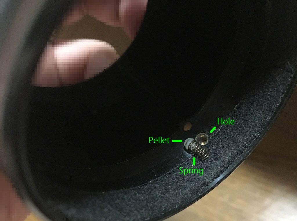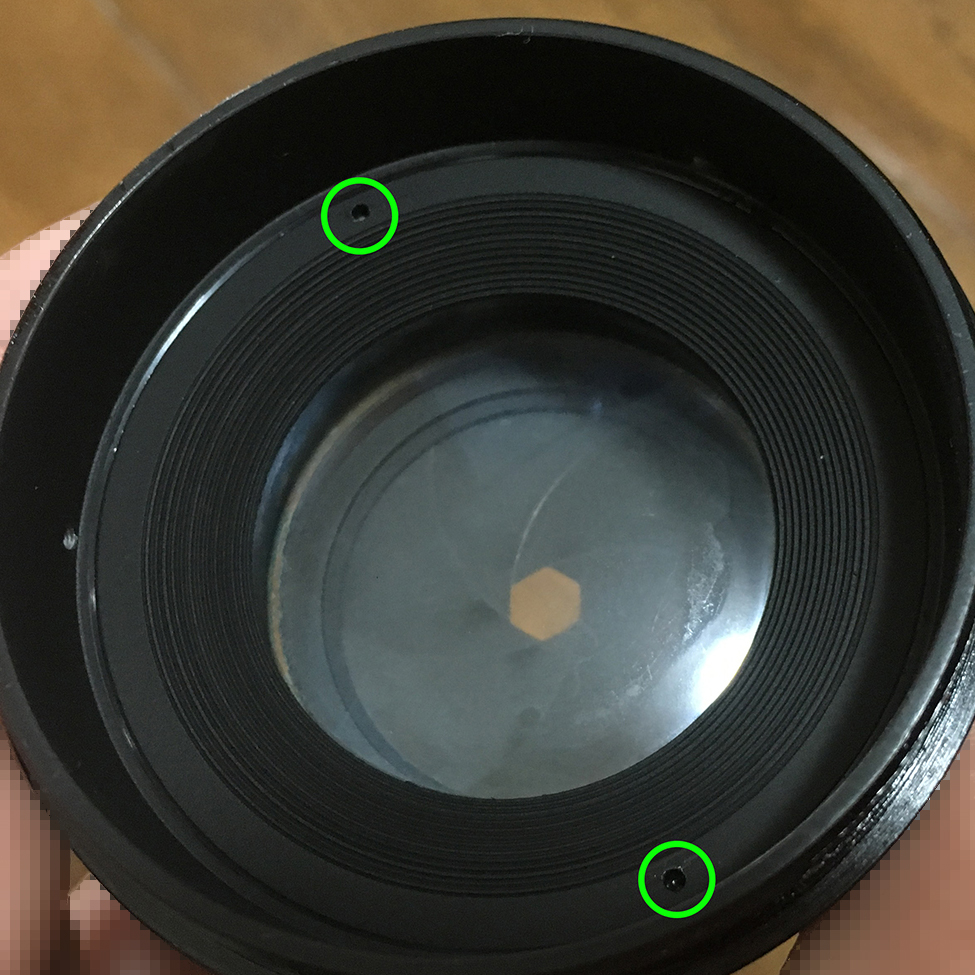 Extend the hood and turn it until you see this little screw. This screw serves as a pin to secure the front ring. But wait, there’s more! There are 3 of these so extract the other ones like you did this one.