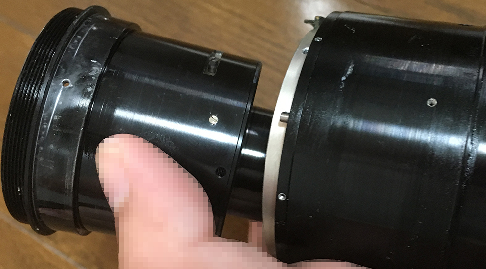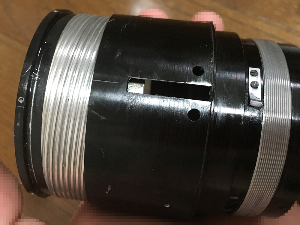 The objective of this lens is huge and many of its threads were sealed with a type of red lacquer seal and even contact cement in some cases. The optical design of this lens is really simple so you do not have a lot of glass to worry about but the individual elements are huge. Handle them carefully so they won’t get damaged.