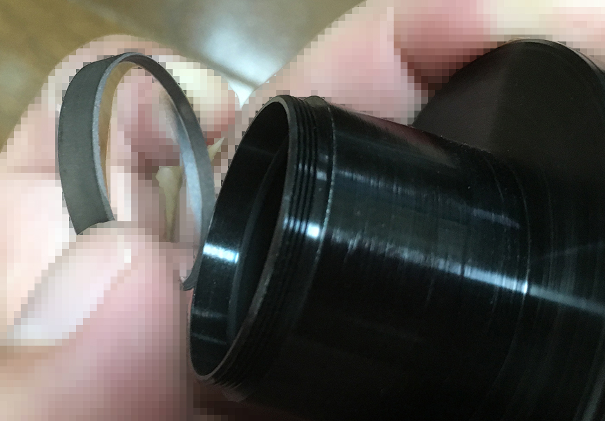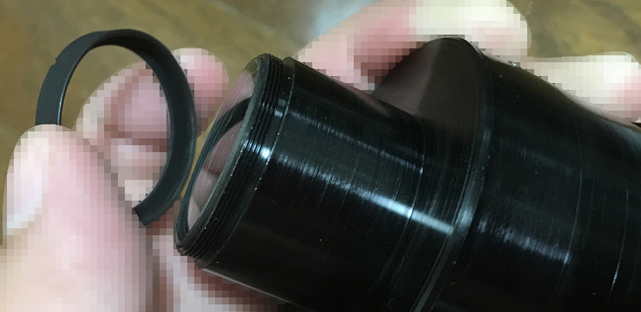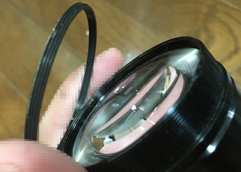 Extract the front element using a lens sucker. Notice that I used a sharpie to mark the leading edge of the lens. I did this to help me identify which side should be facing forward. Also note that there’s a gasket right after the front element. Never lose this rubber gasket or soak it in alcohol.