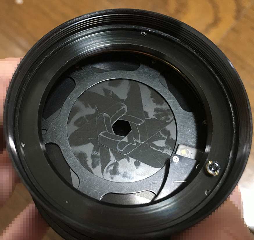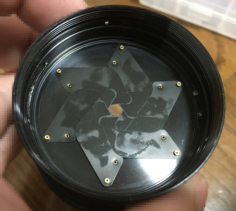 Before dismantling the iris, make small marks so you’ll know how to put it back the same way again later. The marks are a bit too big, I should’ve been a bit more lighter with my hands.