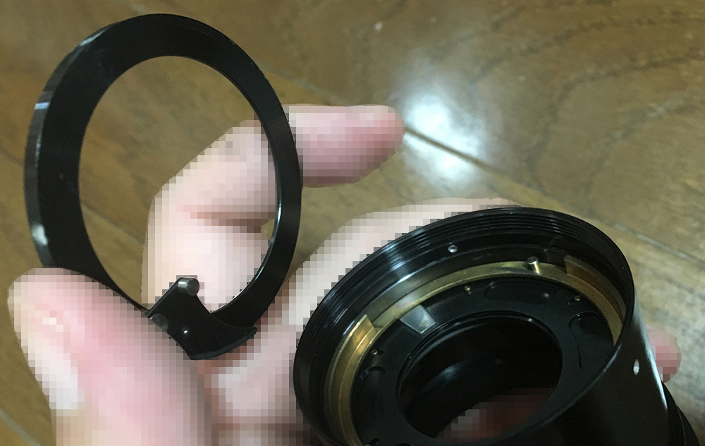 The ring can be removed with your fingers and careful not to harm the iris blades. It can be tight so don’t use too much force or your fingers will slip.