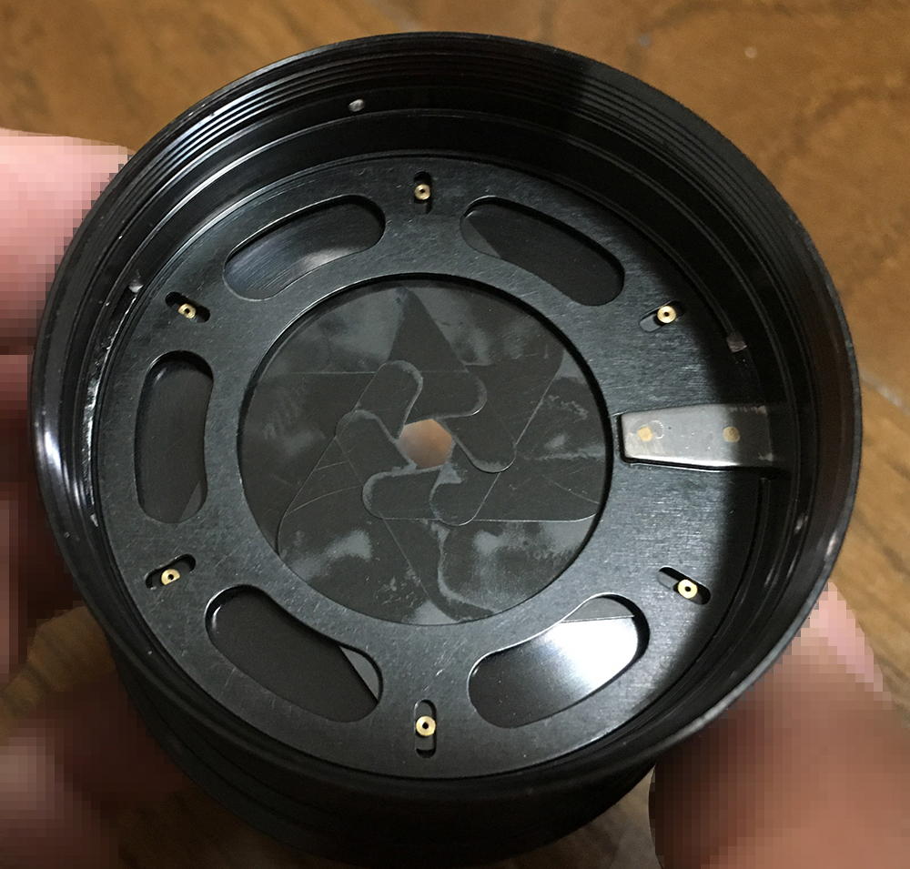 I don’t usually bother with the iris so long as it’s working properly but mine was gummed-up with oil so I had no choice with this one. The iris assembly has a couple of precision adjustment points that you have to be very aware of so before removing anything, be sure to make small marks or take plenty of photos to help you later.