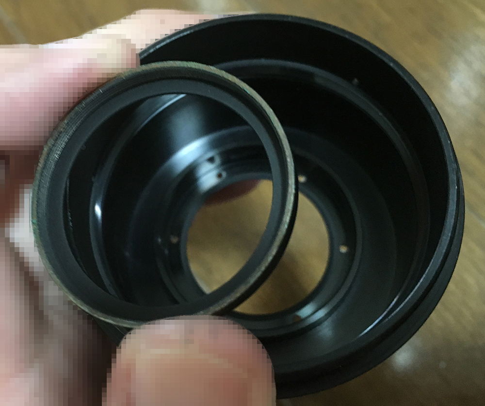 Time to separate the helicoids. Begin by separating the central helicoid from the outer one and don’t forget to mark where they separated because this is the same spot where they should be mate when you reassemble them. Read my article on working with helicoids so you’ll know what to do. Many people get stuck in this step because they forget to follow the right procedures. This is why you should read my articles on the basics and follow them.