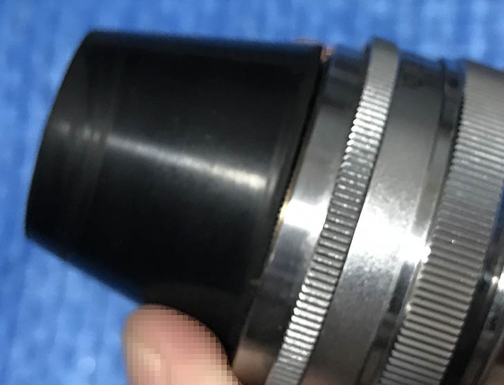 Here’s the later version that comes with a black barrel. It’s a bit lighter because its internals were made from aluminum and its construction is a bit simpler. Notice that the red C is now gone, at that point in the industry most, if not all lenses were coated so it made no more sense to advertise it. It was sold with later cameras like this Nikon S4.