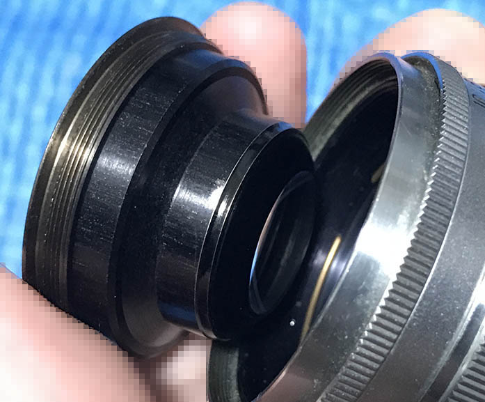 Unscrewing the front ring off is easy but there are times when these are cemented and the only way to get it off is to heat the ring from the sides, being careful not to subject the glass to any heat as that will surely affect the optical cement in any way.