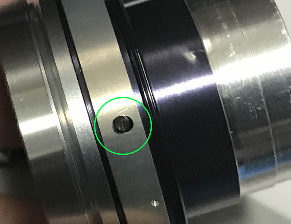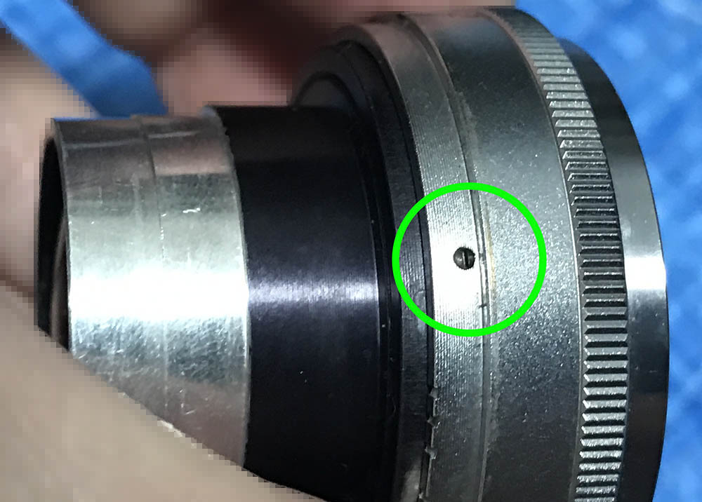 Pull the barrel off from the objective. Notice that there’s a slot at the throat of the objective, the screw that I told you not to remove should align with it.