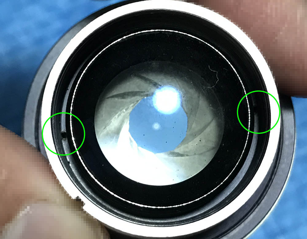 It’s not unusual to find these with oily irises but this is not acceptable at all as it could evaporate and ruin the glass. A lens that exhibits this should be overhauled, no exceptions at all.