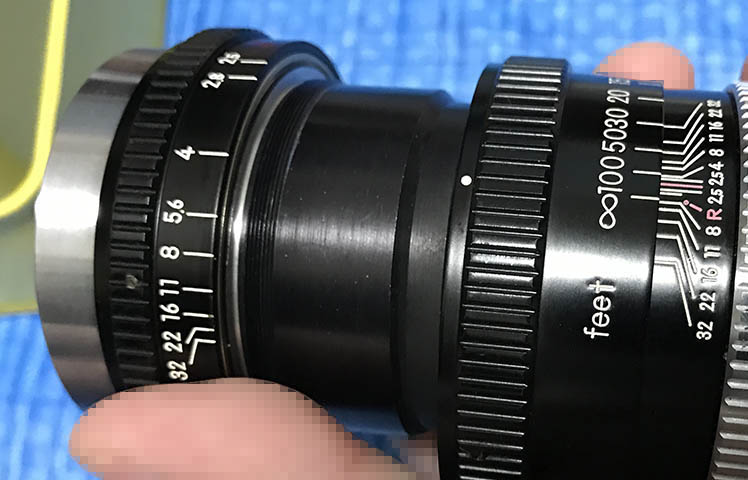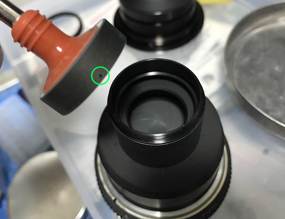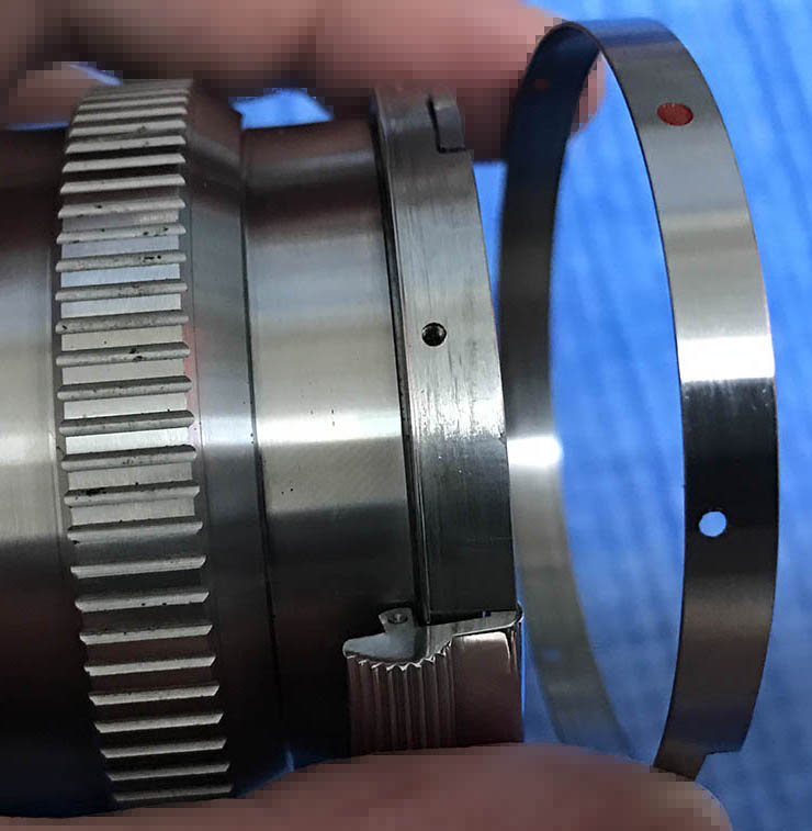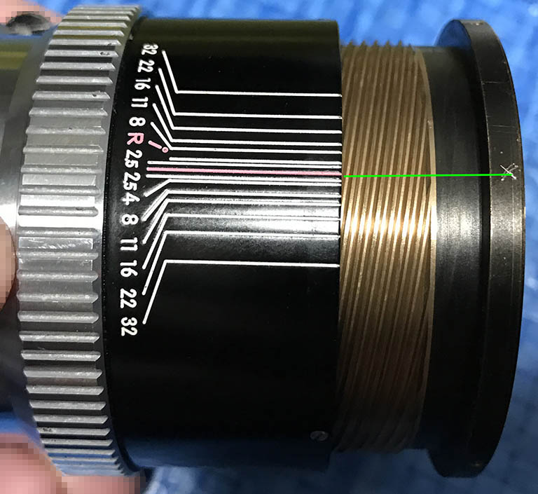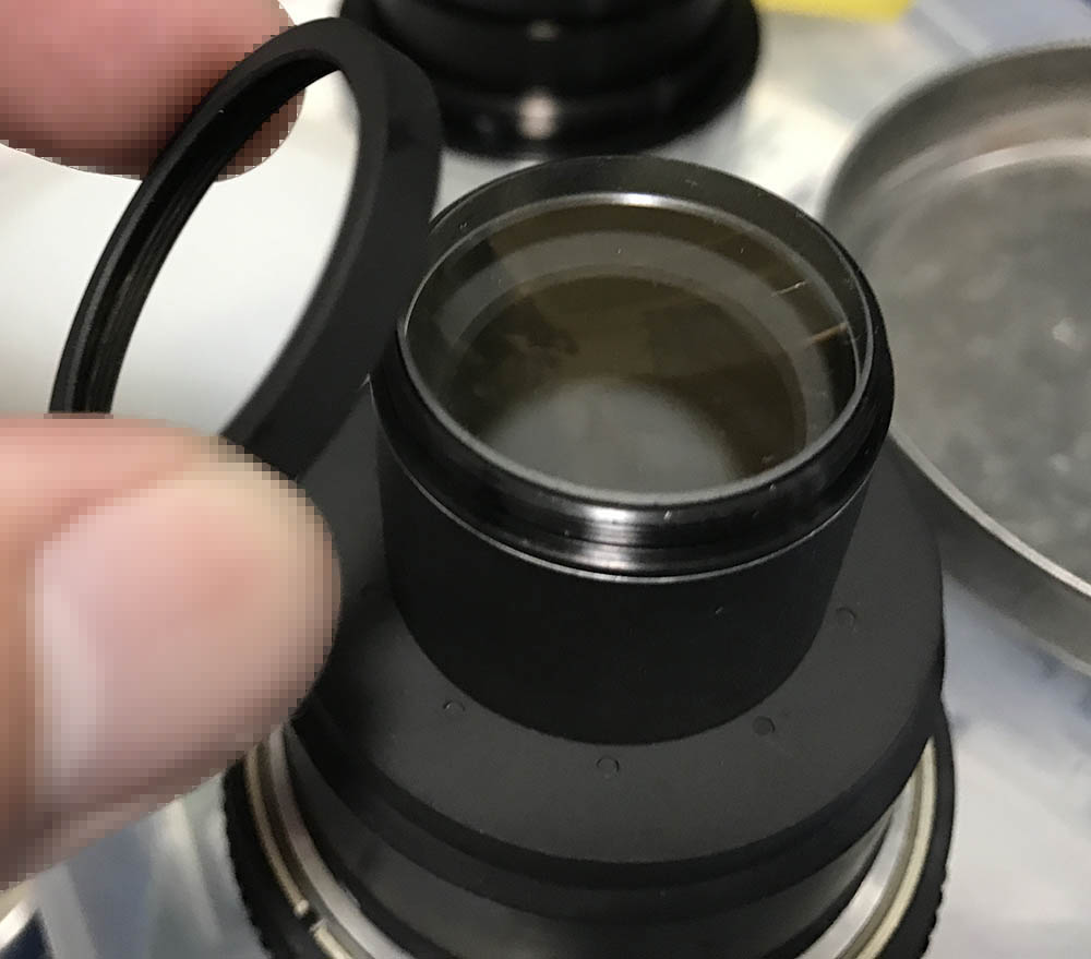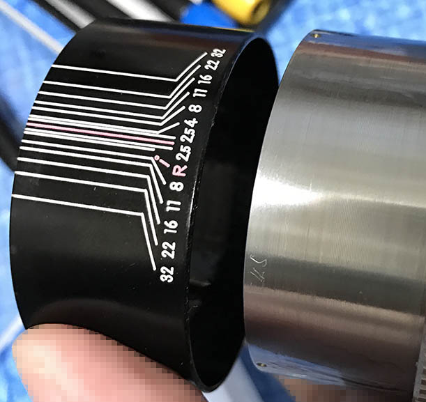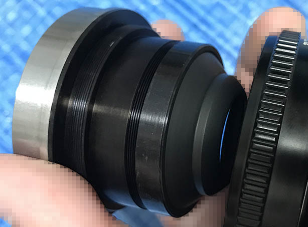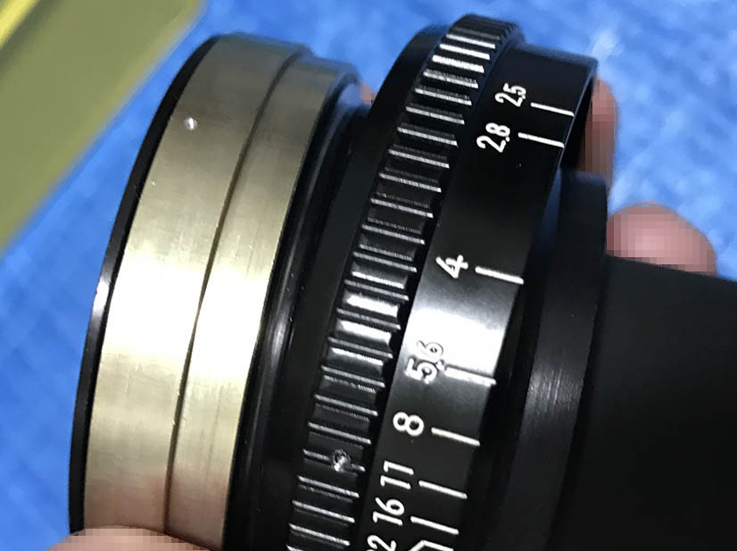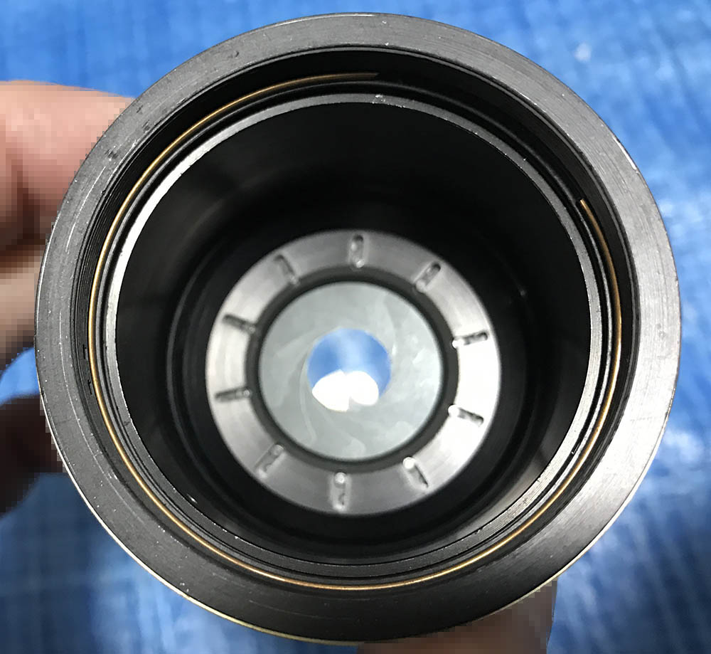 Be careful not to damage or lose the brass shim. It’s used to help adjust its focus. These are unique to each lens and were selected from a box of spares by the person who’s in-charge of calibrating its focus.