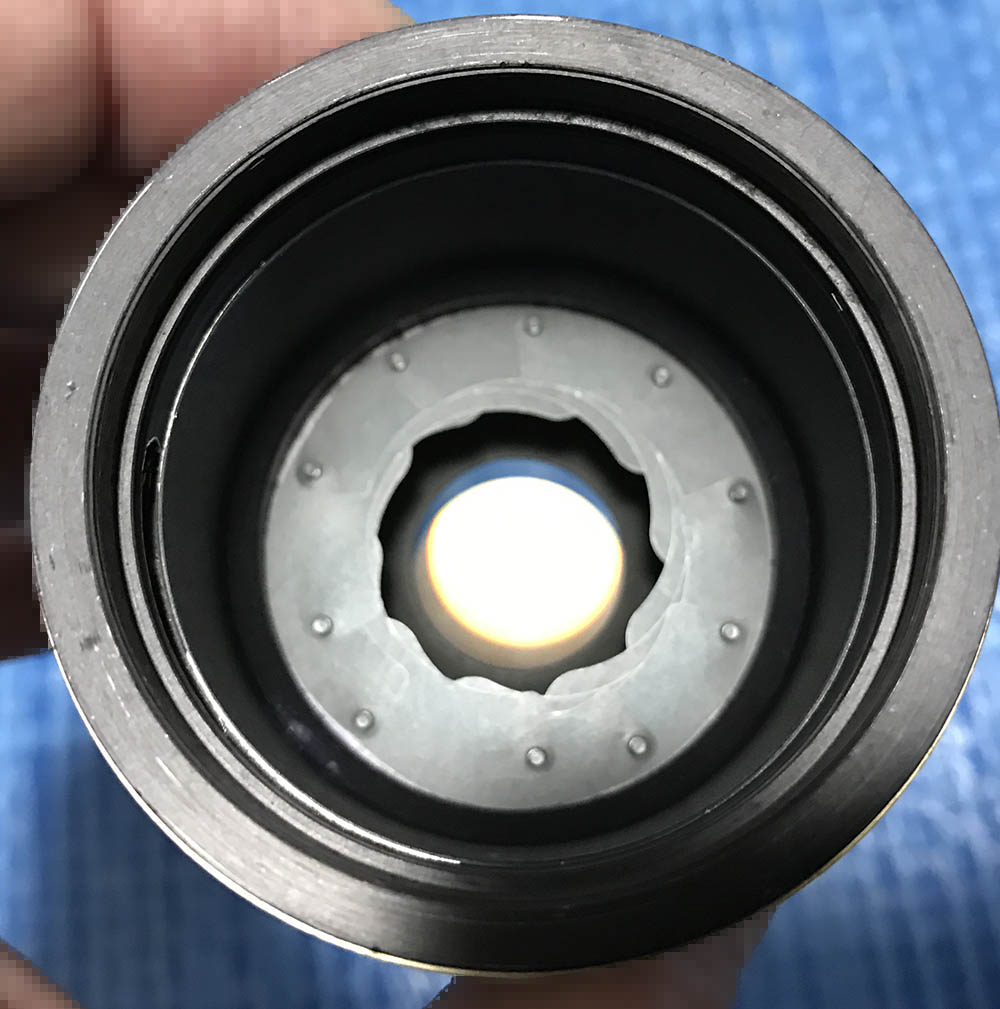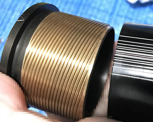 The helicoids have been thoroughly cleaned. I polished them with a stiff wheel-brush on a Dremel then wiped them until the tissue wipes clear of anything. I’m very meticulous when it comes to this step because I do not want the old grease to contaminate the fresh one. Use a lighter-type of grease for this, the internal helicoid on the camera will add resistance and they will all add-up. Do not apply too much grease or you’ll end up with an oily barrel.