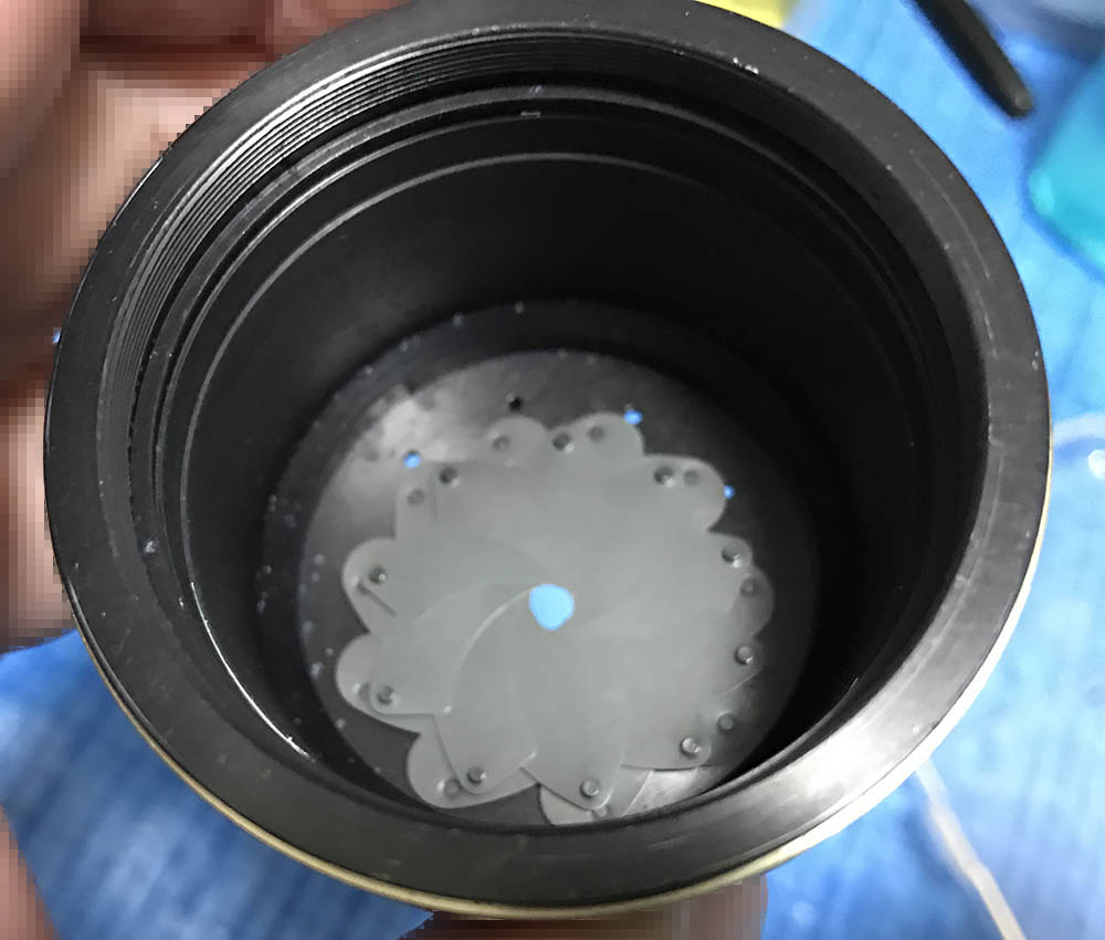 This is how the iris mechanism looks like. It’s hard to put it back, read my article on how to repair preset-type irises so you’ll have an idea on how it’s done.