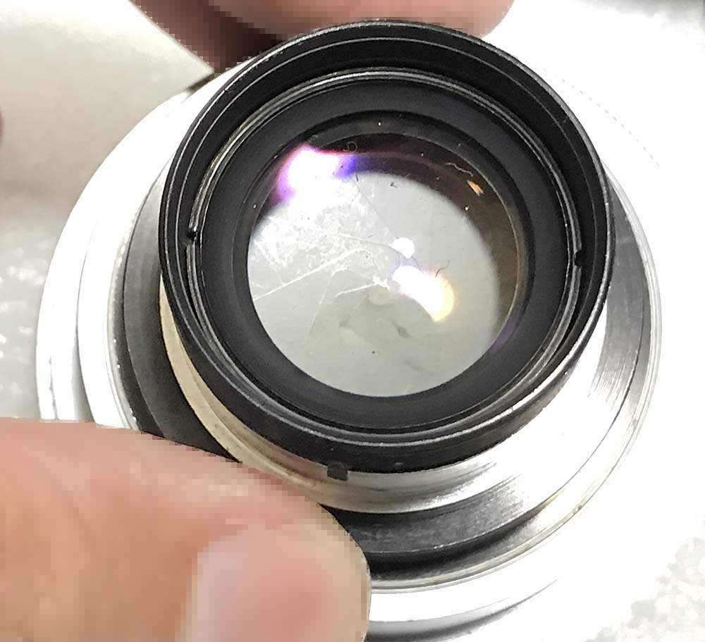 Lanthanum was used in the rear element, it’s slightly-radioactive. This turns yellow with time, some people will bleach this with sunlight. I won’t risk it, I would rather have a yellowish lens than one with balsam separation.