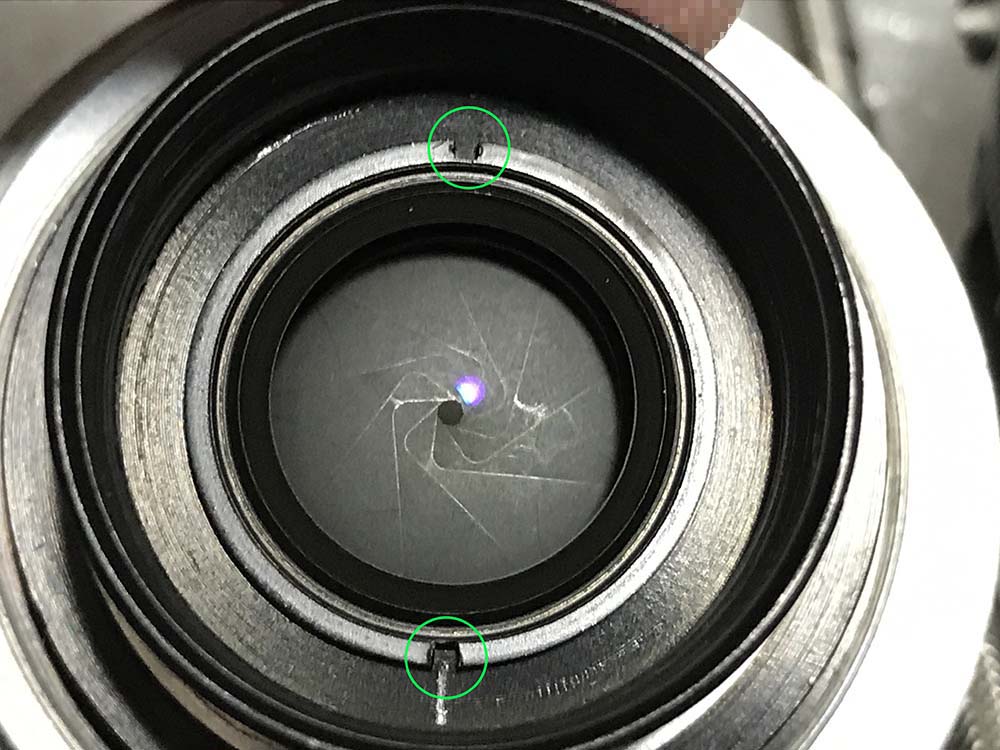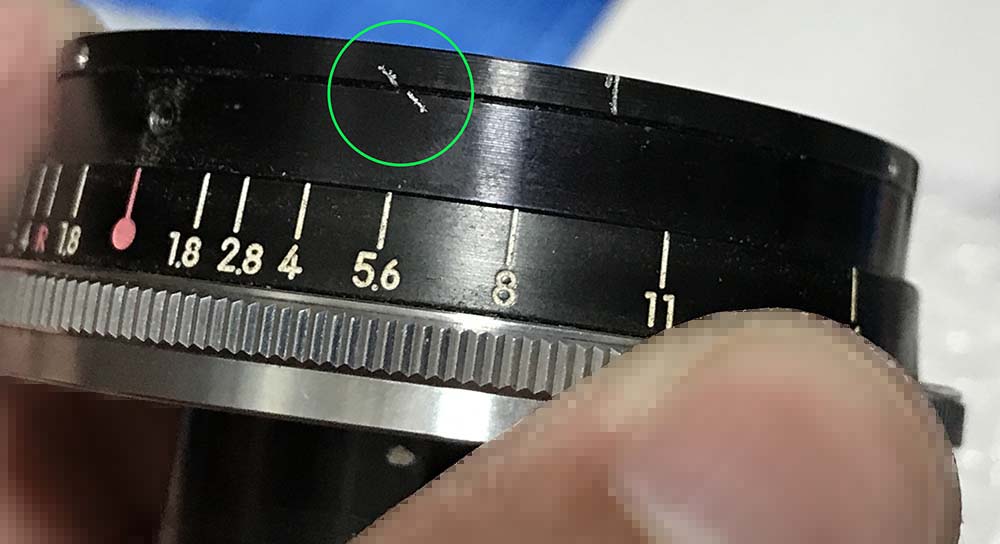 There is a line that was scratched at the inner helicoid, this means that this lens was serviced before. It serves as an alignment guide.