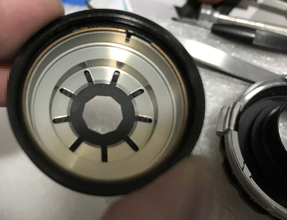 This is the only way to clean the iris mechanism. Some people will flood the whole mechanism with solvents to clean it but that won’t solve anything. It may be good for a while but any dirt that’s deep-within the mechanism will stay hidden. Since you have gotten this far why not dismantle it completely if the iris is dirty or oily? It’s worth the trouble.