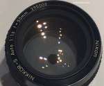 This is the Nikkor-S 58mm f/1.2 Auto, an early prototype of what would be the legendary Noct-Nikkor 58mm f/1.2 Ai of 1977 which the became the Noct-Nikkor 58mm f/1.2 Ai-S in 1981. I am not sure if it has a 52mm thread but it sure looks closer to 58mm. I don’t know if it has an aspherical front element incorporated at this point but it sure looks different from what came out about 5 years later.