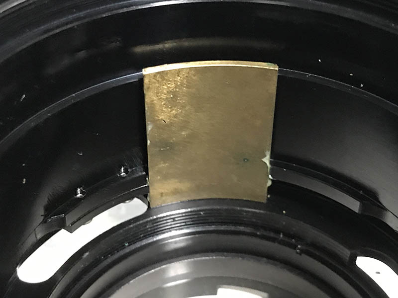 You can now remove this brass ring. This ring is where the focusing ring is attached to. You adjust the scale of your focusing ring with this, you tighten the screws of the focusing ring to finalize your adjustments.