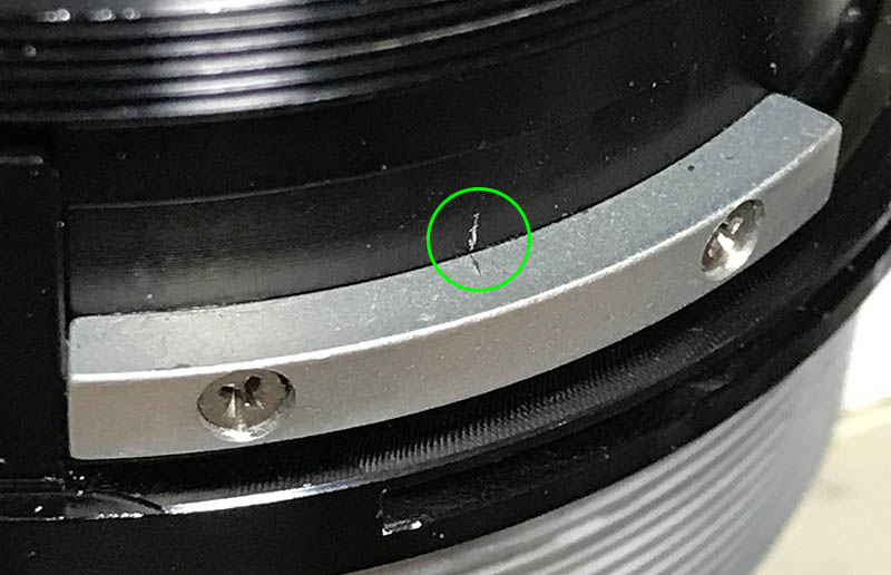 If you wish to remove the hood, locate and extract this screw and turn the front ring to remove it. There may be more than just a screw here so just go and look for them just to be sure. The front ring can be difficult to remove, it is usually sealed with lacquer so applying some alcohol on the seams will help you remove it. Remove the front ring after the front barrel is separated from the rest of the lens so you won’t stress the threads.