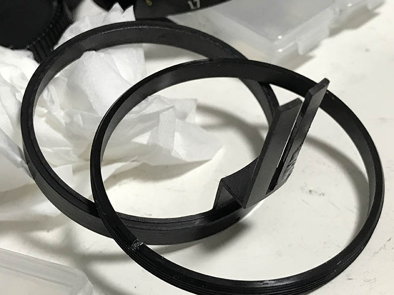 The inner helicoid is constrained by this helicoid stop. This helps prevent it from turning beyond the lens’ focusing range. It can be adjusted so make a small mark to you’ll know how to align it later. You also calibrate the focus of your lens with this part.