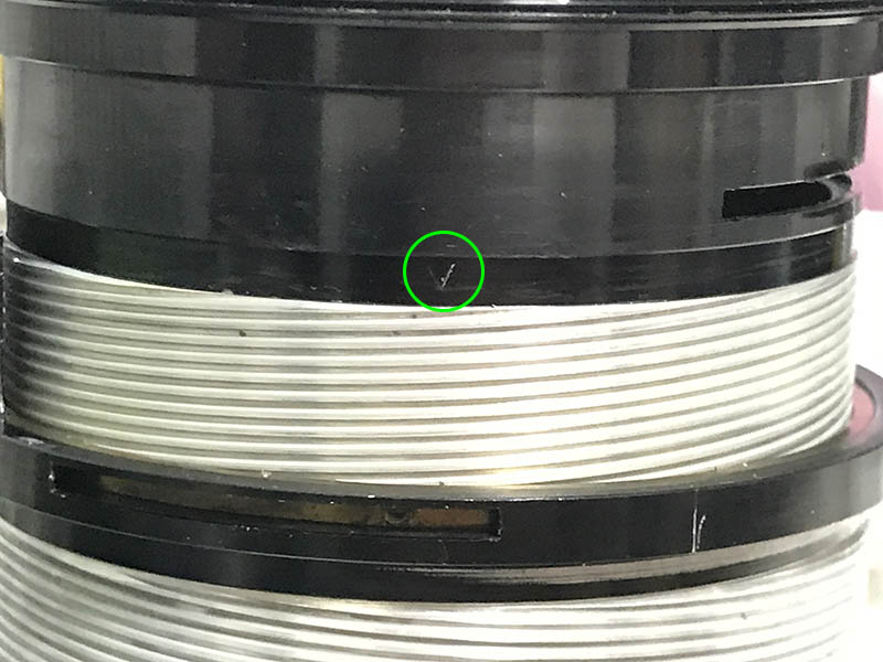 It is important to take as many notes as possible at this stage. You will want to work on the barrel while it’s turned to infinity from this point. This helps give you a point of reference when you take notes. I also made a small mark to help me know how things should be aligned when the barrel is turned to infinity. Also note the distance between the gaps as they’re also important.