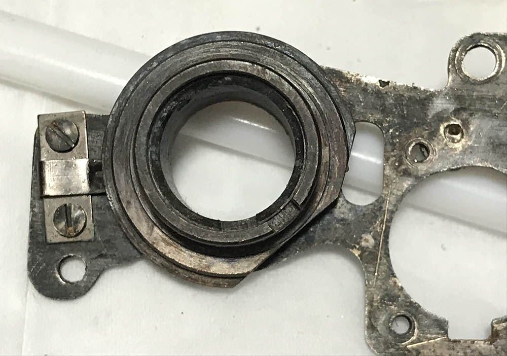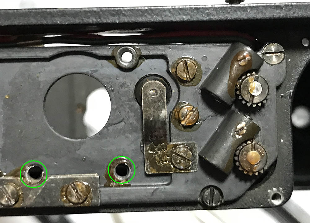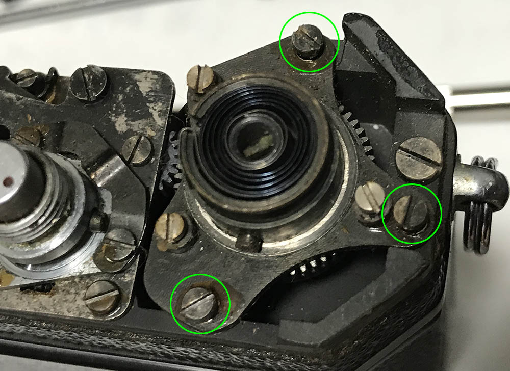 The baffle is secured by 4 screws and here’s 2 of them (removed). There are 2 kinds of baffles for the Nikon S2, earlier ones come in several pieces while the later one was cast as a single piece which feels flimsy in my opinion.
