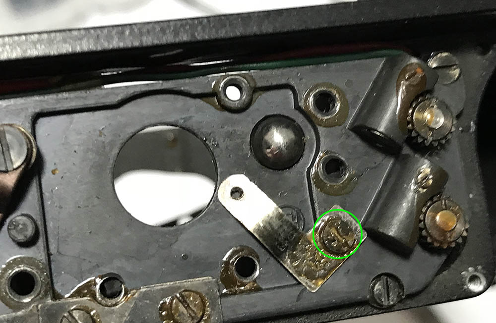 Loosen this screw to remove the change-over lever from its shaft but take a lot of notes before you do so because this can be tricky to adjust. I wanted to remove this because I needed more space for replacing the shutter but this is best left alone.
