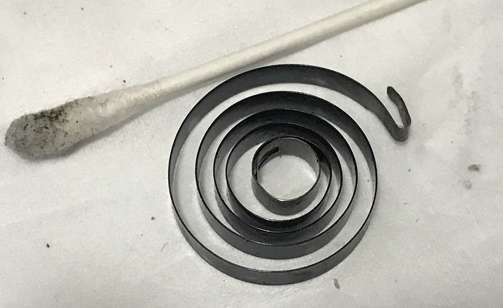 Cleaning the spring for the advance lever isn’t always required but if yours is dirty then the only way to clean it is to remove it. Make sure that the bent tip is safe and use a Q-tip saturated with solvent to clean it carefully.