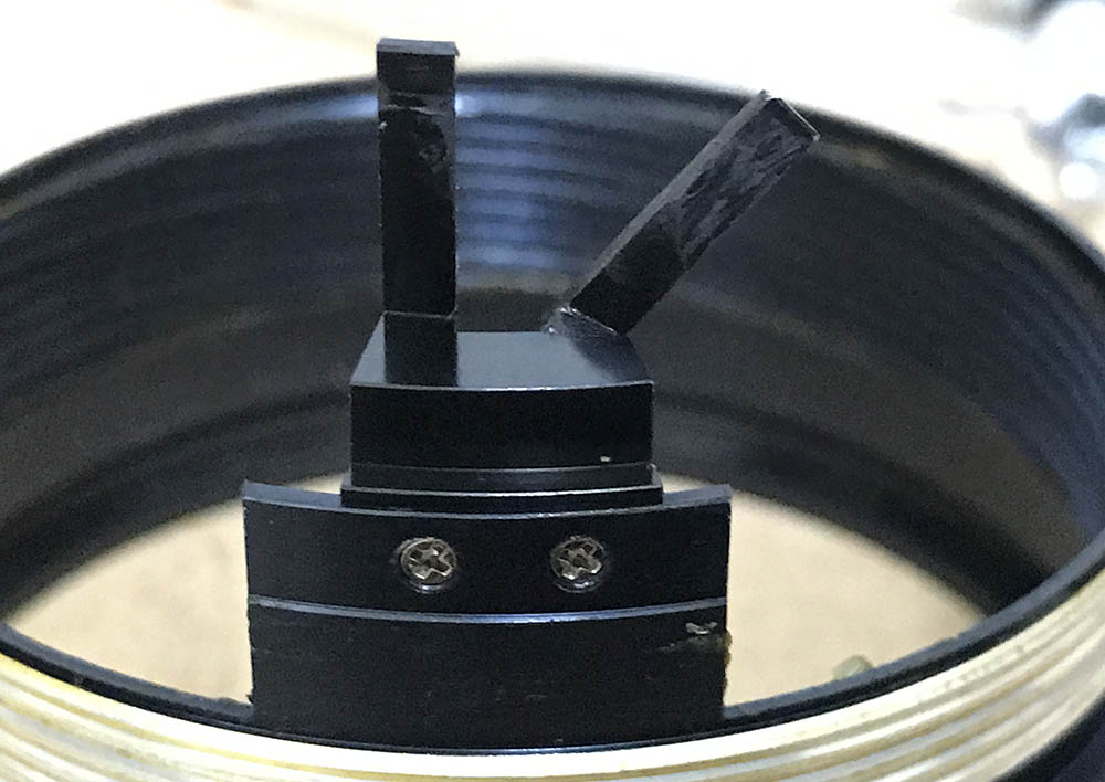 You can remove the CRC’s coupling fork through these openings. I didn’t do it because the fork on this particular lens was damaged so I wanted it to be connected to the helicoid when I remove it so I can see the whole extent of the damage before I remove it.