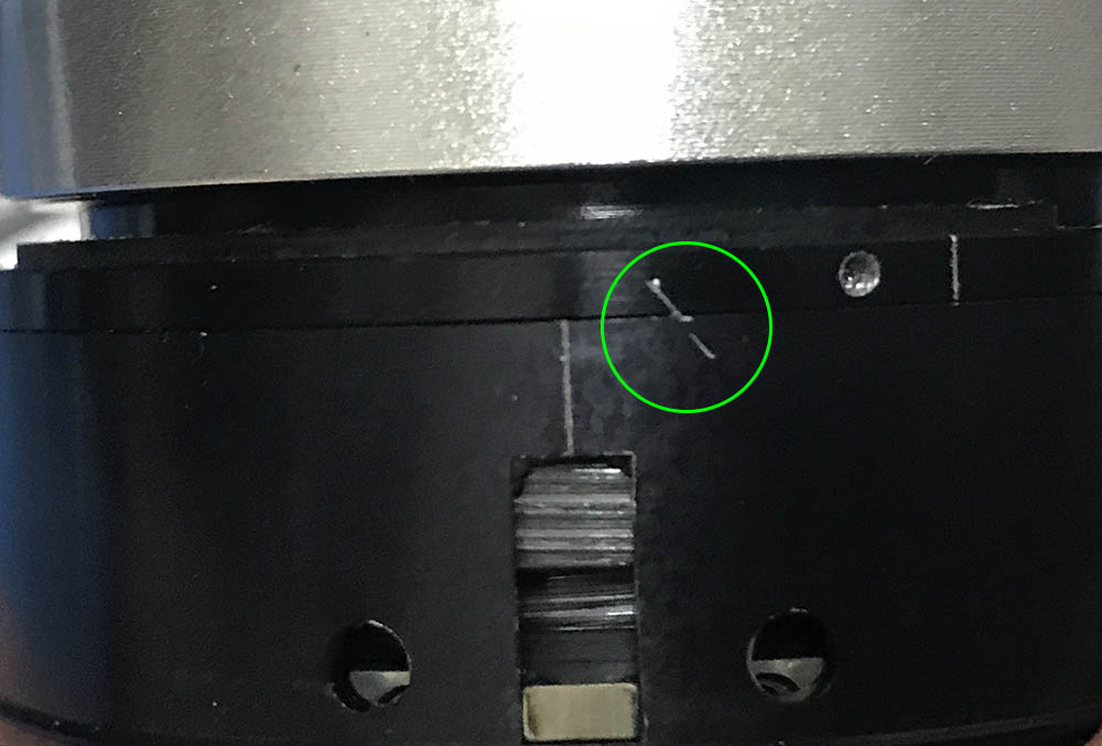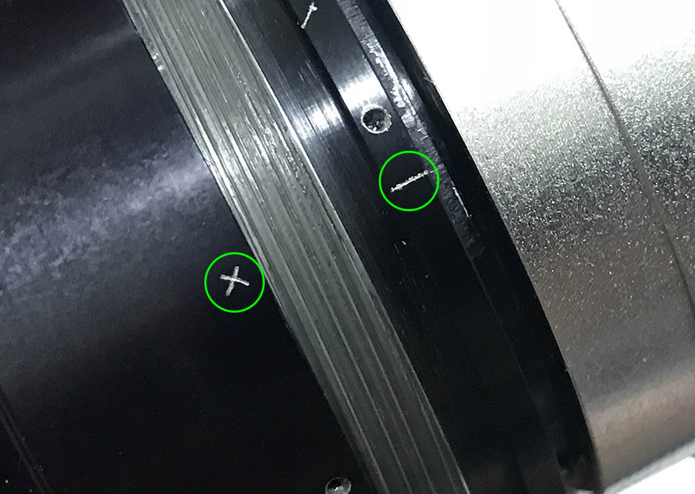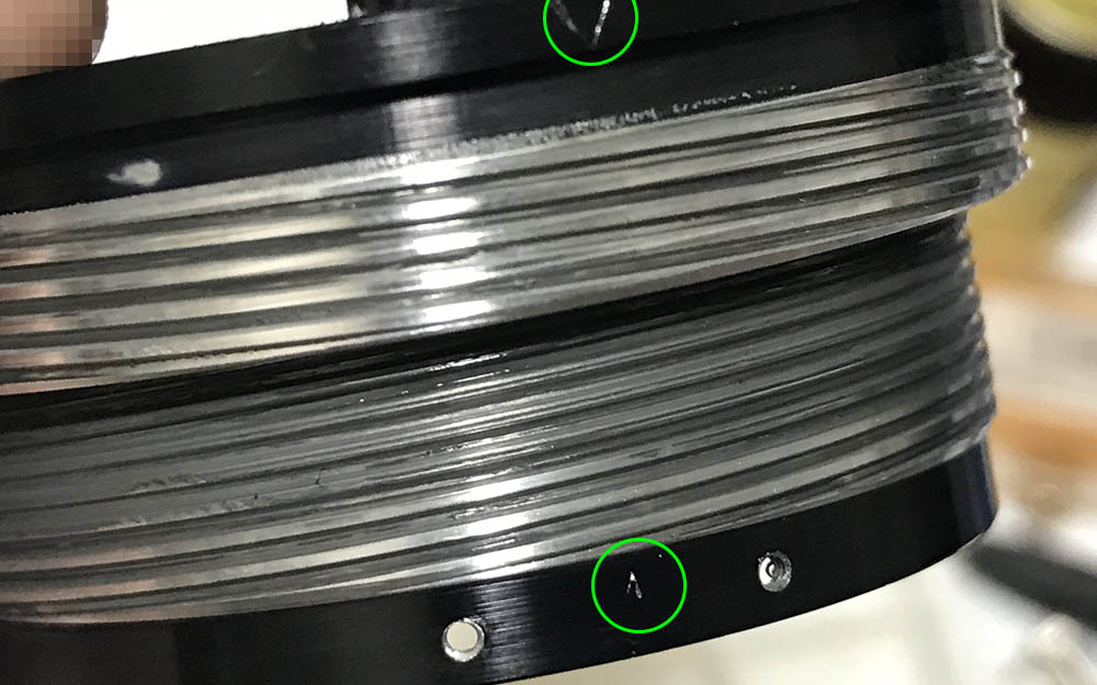 Once the helicoid key is gone you can turn the helicoids beyond their range. I collapse the helicoids and make a diagonal mark as a guide so I’ll know if I got the alignment right after putting everything back. If I failed to replicate this then I will have to re-mesh the helicoids again until I got it right. This is just a guide and a little bit of difference is ok so long as the lines are not too far-off from each other.