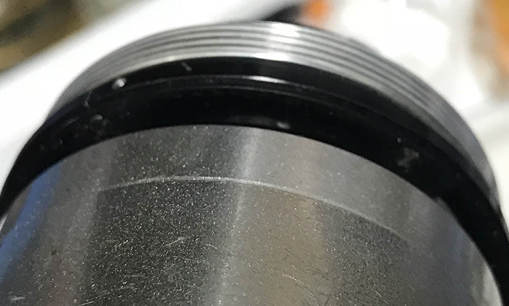 The 3rd and 4th elements are sealed to their housing. Carefully remove the housing and do not damage the delicate lip of the 4th element. Be careful not to damage this part and don’t use solvents near it because this is a cemented group.