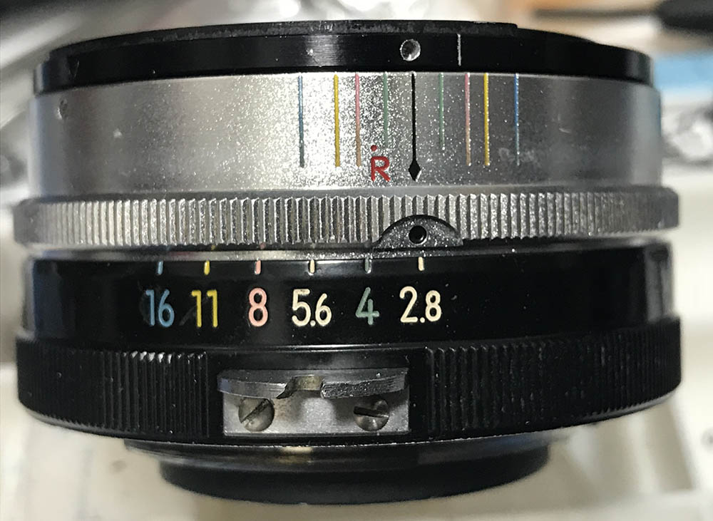 The Tick-Mark lenses were made a bit better than later Nikkors in terms of aesthetics and build. They all have a clear-coat applied to their barrels and these turns yellow as they age so the chrome parts look yellowish. The screws of the sleeve and bayonet mount were also hidden, giving you the nice, clean look of most rangefinder-era lenses. The delicate 9-bladed iris is superb because it helps give you smoother bokeh quality compared to the ones you get from the 6-sided ones. The iris remains round at every aperture. I like this feature a lot but it was difficult for Nikon to make them at that time when they were transitioning their tools and dies to make automatic irises. The depth-of-field scale has a small, red “R” engraved on it instead of simple dot that you will find in all later Nikkors. These are just some of the features that you’ll see from the outside and you’ll soon see differences on the inner parts when it comes to the repair part of this article.