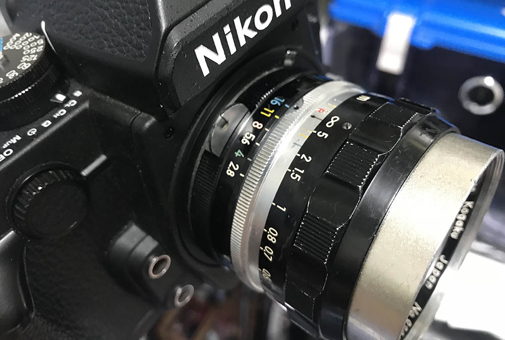 Some features of the Tick-Mark lenses make it incompatible to use with a lot of later Nikons. The aperture ring has a lip that extends to cover the throat of the bayonet mount, this helps cover the seam so dust won’t end-up inside and it’s an early form of rudimentary “weather-sealing”. Some earlier Nikons won’t be able to mount it, too. The mechanical Nikkormats won’t mount these lenses because they have a speed-selector ring around the lens mount. This is the main reason why some Tick-Mark lenses can be found with the said lip of the aperture ring was shaved-off. This results is bad for resale, it’s important for collectors to buy lenses that are as close to original whenever possible. The Tick-Mark lenses also started Nikon’s tradition of standardized filter sizes, it was a radical concept back then at a time when lens designers would just make lenses that use odd-ball filter sizes. That resulted in people buying more filters than they had to, this radical concept made it practical and cheaper to invest in a set of filters because all you had to buy is a set of 52mm filters and attachments when using Nikon’s standard lenses. It was only necessary to buy bigger filters when using the specialized Nikkors but they’re also using standardized filter sizes such as 62mm and 72mm. It’s a mystery why Nikon recently makes lenses that uses odd-ball sizes like the Canon-style 58mm ones.