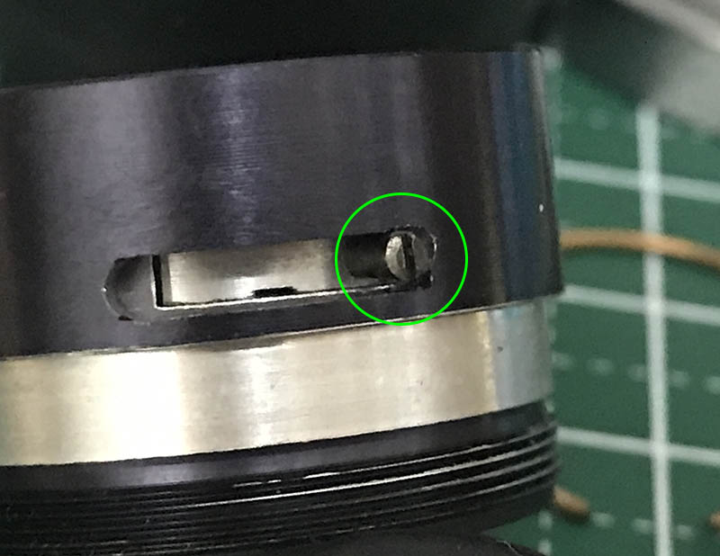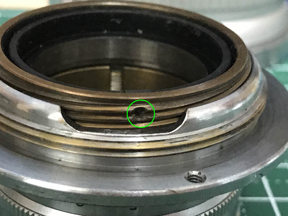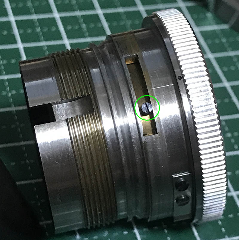 Here’s the helicoid key and its screw. Make sure to take plenty of notes and remember its position while the barrel is at infinity. It can be hard to reach it and you may even strip the head if you’re not careful.