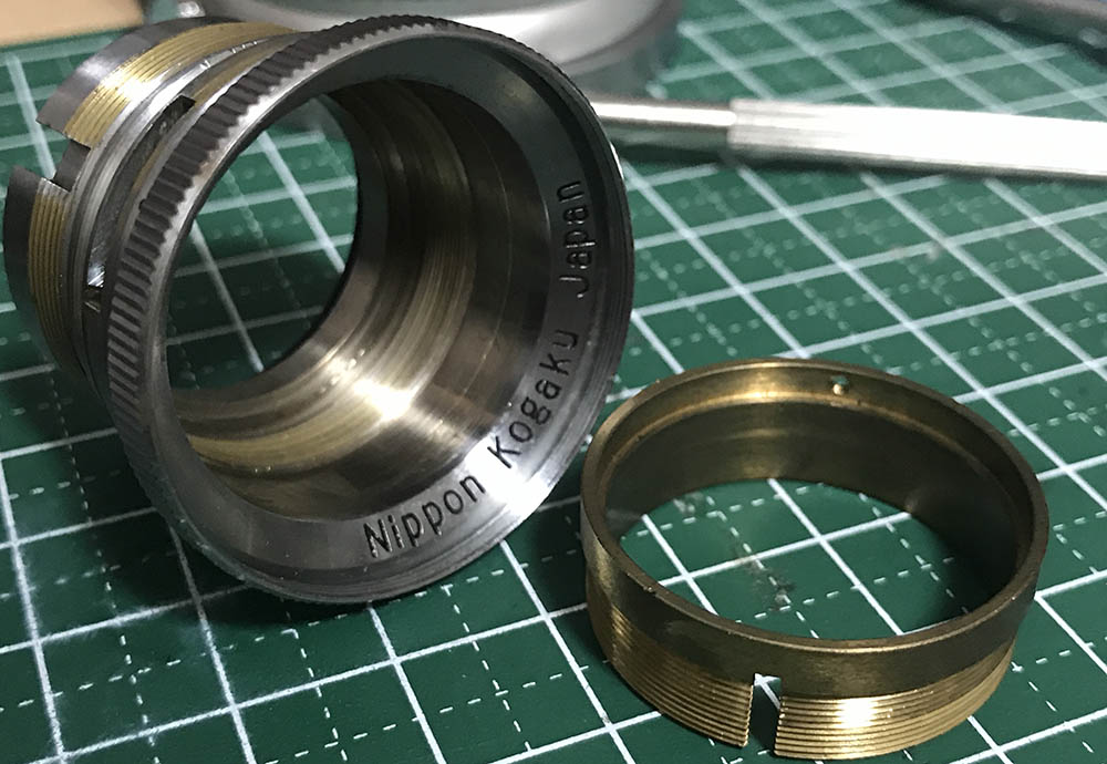 This is a delicate part of the lens because you get this correctly or your lens won’t focus properly. It’s the helicoid that couples to the rangefinder arm in your camera, don’t forget to take measurements and notes so you will know its position when everything is at infinity.