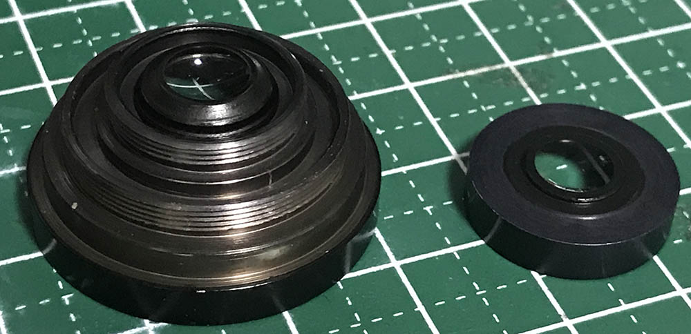 Clean the helicoids well and make sure that you did not leave any residue. I usually soak the larger components in an alcohol bath for this and scrub the parts where grease was applied with a kitchen sponge like Scotch. Don’t use the thick-type grease for this as it will make this difficult to turn. Only apply a small amount so the grease won’t end up in the iris or make the helicoids leak. Avoid applying anything to the parts that are closest to the iris, I use a special type of powdered graphite for this.
