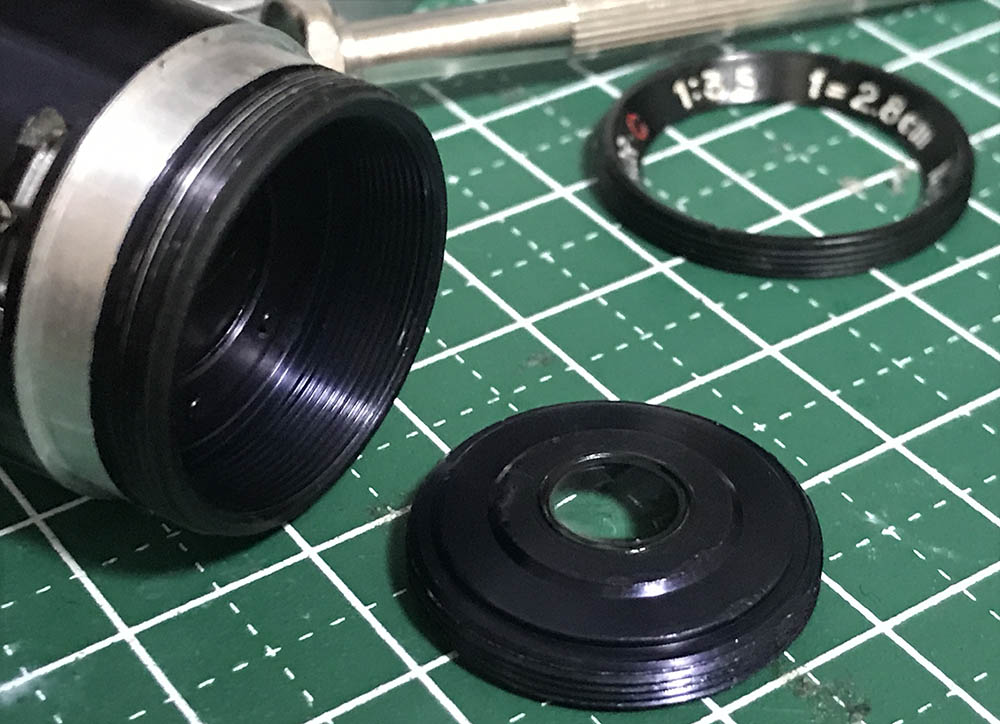 Examine the iris first before you dismantle it, be sure you know how to put it back again later so the hole of the screw lines-up perfectly with its slot or the iris won’t operate properly.