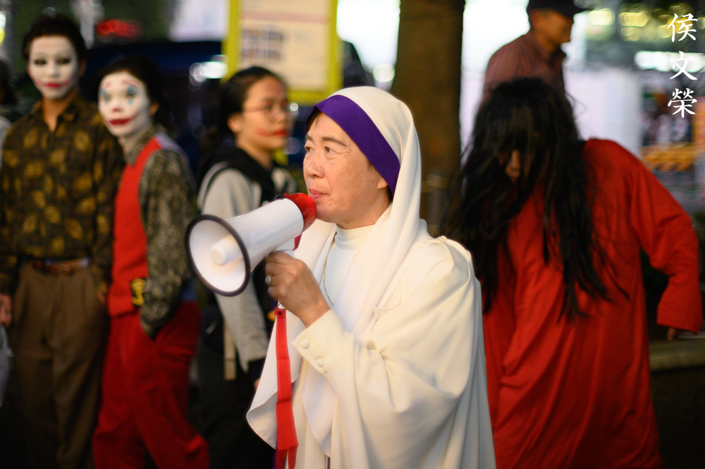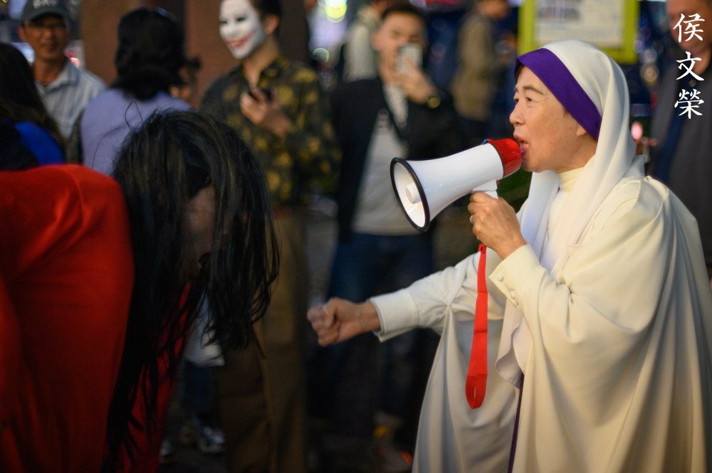 I don’t know if this is a real nun, she was preaching that Halloween is never a Christian tradition or something like that and then somebody dressed like a possessed person went up to her after which she tried exorcizing him. The photo should show you how blurred the background can get at this distance so you’ll have an idea when you want to shoot portraits with this.