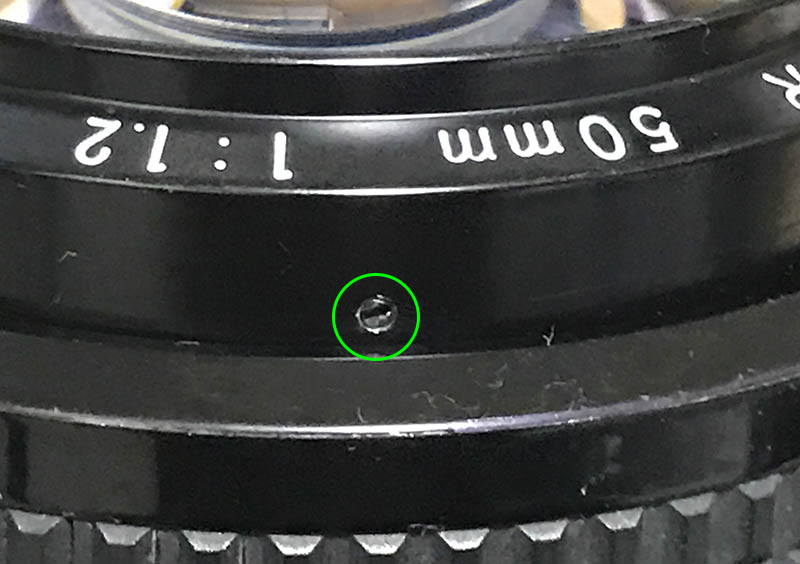 The depth-of-field scale can be removed after extracting its three screws. Be sure to use a driver that fits perfectly to prevent scarring the metal.