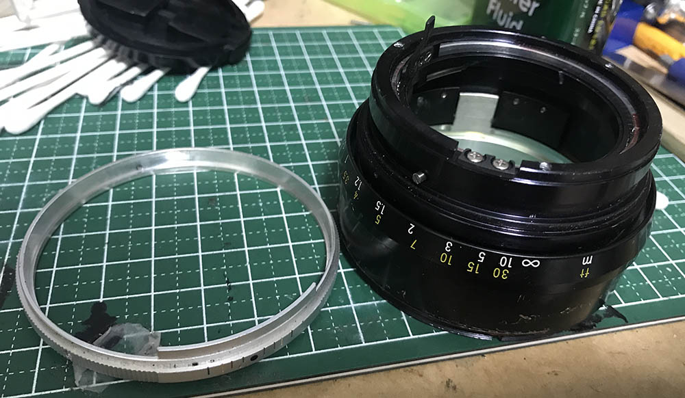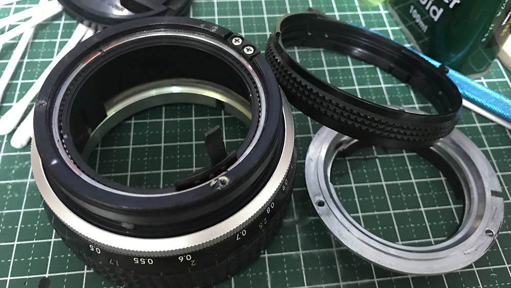 You can remove the brass ring to open the aperture fork mechanism but I don’t recommend you to go that far if you don’t have to. Mine was so dirty so I had to do this.
