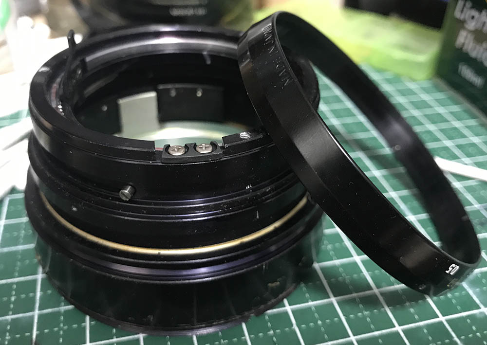 The lens barrel is not so difficult to repair on this lens from an experienced repairer’s point-of-view but this is something that is beyond a novice’s skill. Putting the objective back inside the barrel can be frustrating if you do not know what to do. The barrel construction reminds me of the Nikkor 50mm f/1.2 Ai-S and the Noct-Nikkor 58mm f/1.2 Ai-S when it comes to the helicoid setup so you can read those, too. Taking a lot of notes is vital to make sure that you don’t miss anything just in case.
