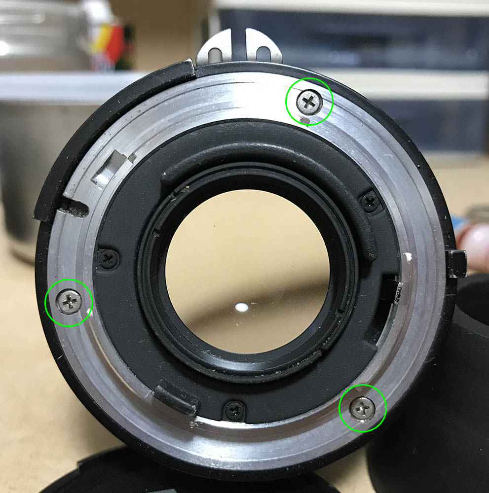 Extract these screws to remove the bayonet. If you’re new to lens repair, do yourself a favor and read my article on how to remove screws. Many people don’t know how to do this so they strip the heads of their screws. Only use a screwdriver that’s JIS, these are not regular screws.