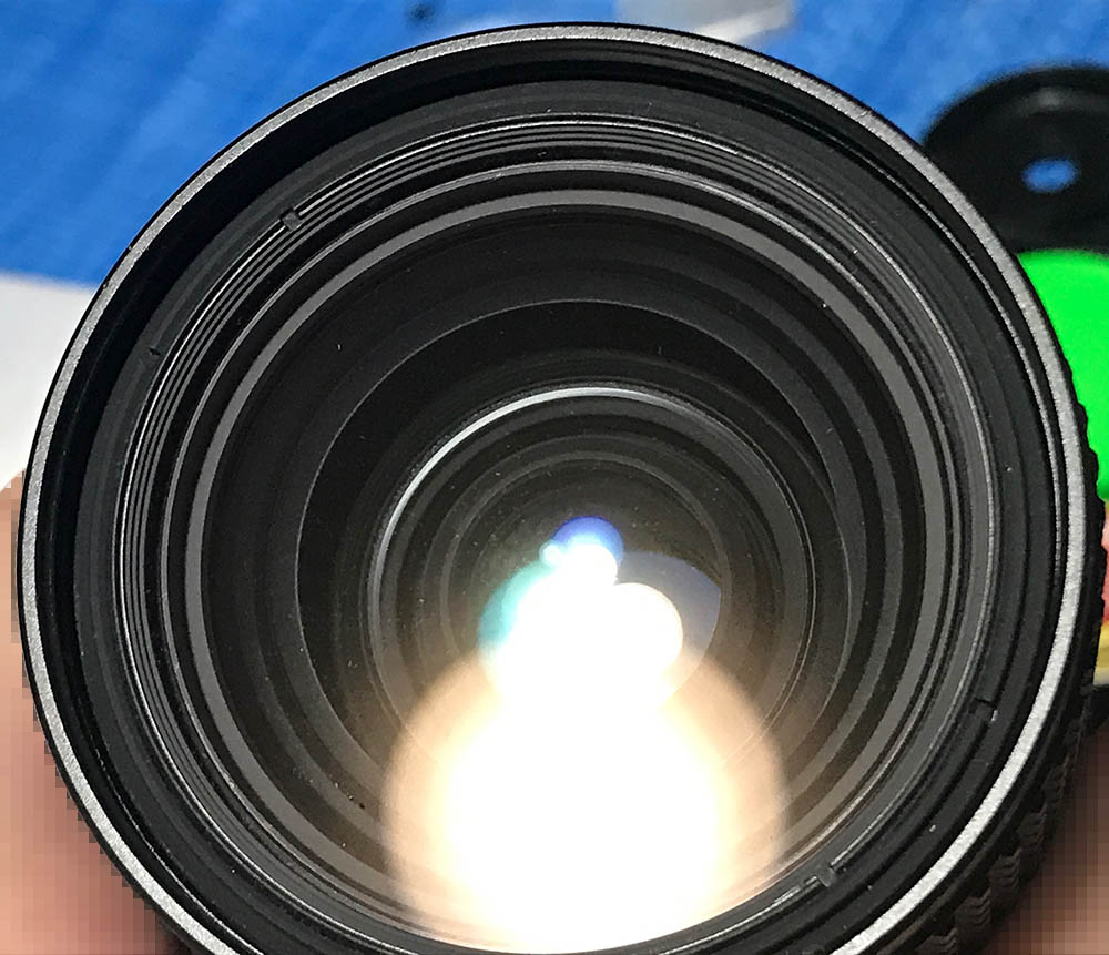 You won’t get much in terms of blobs but you will get this rainbow-colored ring if you have strong light sources in your scene such as the sun. You will want to use a hood for this just-in-case.