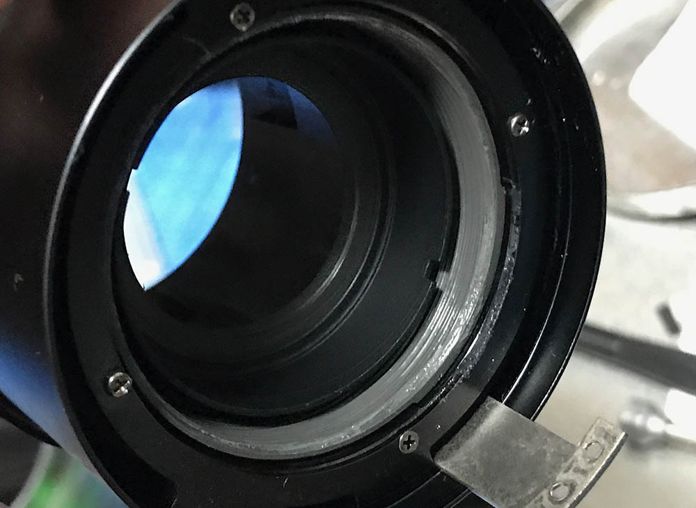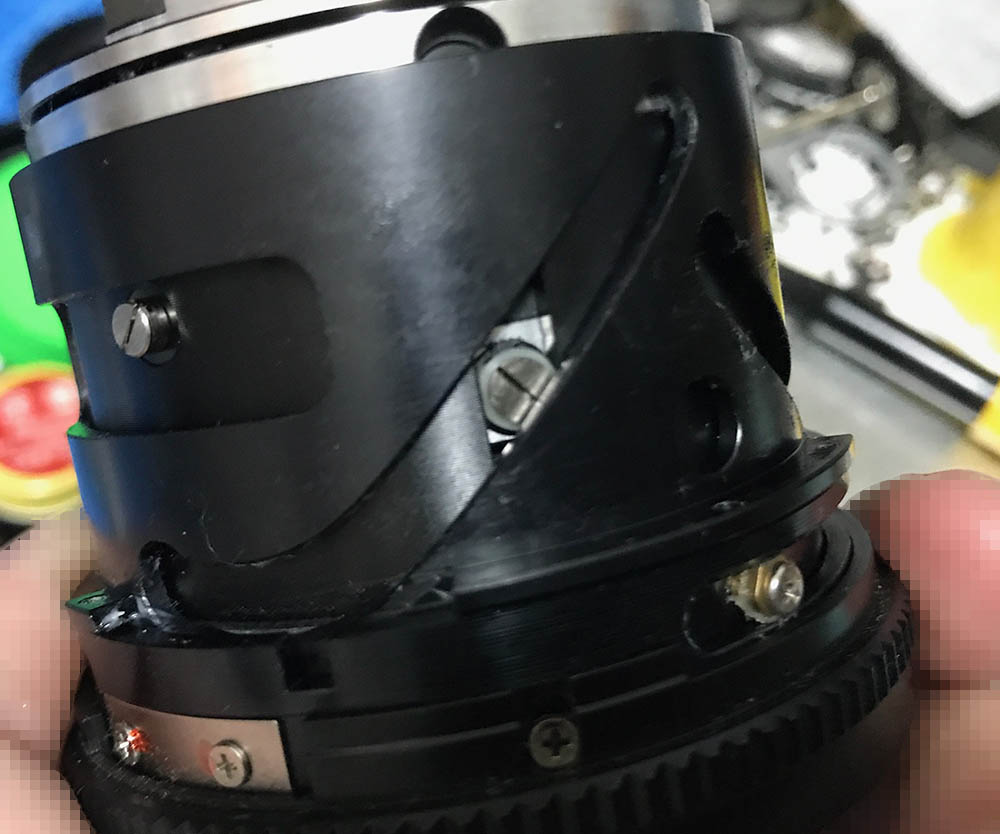 Make sure that you put this back the right way later. Note that it’s greasy, oil can easily migrate to the iris and optics from this part.