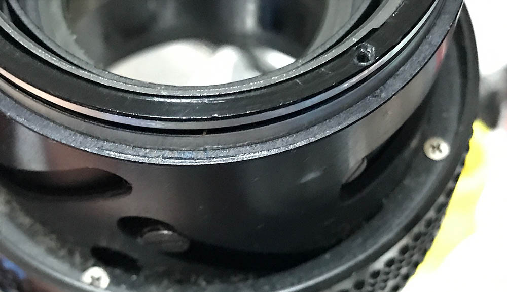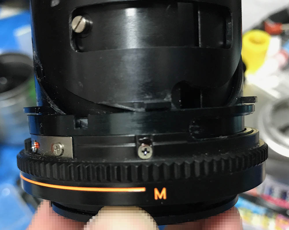 You can easily remove the focusing ring once the screws are gone. I made a small mark to note the infinity mark but it’s pointless here, really.