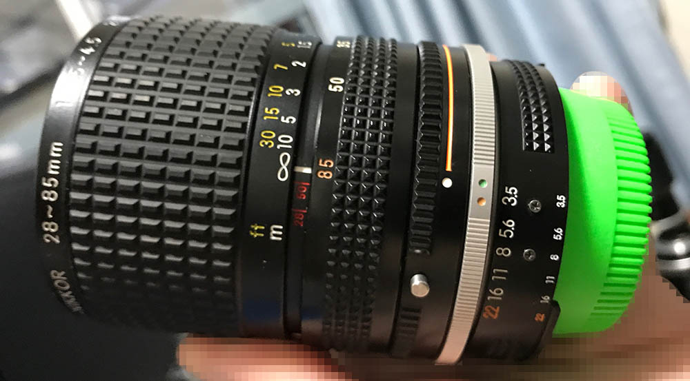 Unlike many Zoom-Nikkors of its time this one isn’t a “pumper-zoom”, it has a proper zoom ring and a separate focusing ring like most modern zooms. It also has a 3rd ring near the aperture ring that enable you to extend it just a bit more at 28mm so you can take close-ups. There are 2 more lines near its centerline indicating the centerlines for infrared photography. There are 2 dots indicating the real aperture of the lens at either end of the focal range, green for 28mm and orange for 85mm. I don’t like variable-aperture zooms, it makes manual exposure a bit more difficult since you have to factor-in its real aperture when taking an exposure.
