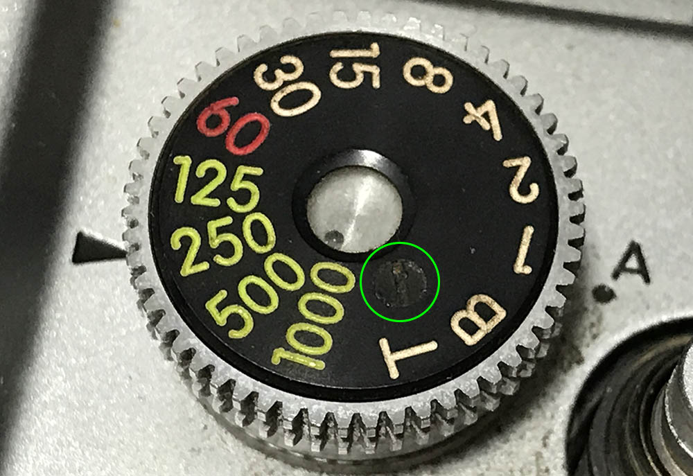 The shutter speed selector dial can be removed once you extract this screw.