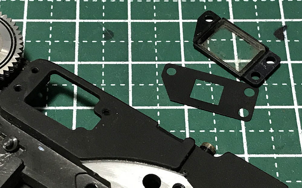 The frame of the window and its mask can be removed. The mask serves as a baffle to prevent stray light from making the rangefinder look washed-out and it also helps keep the protective glass stuck to its frame. The glass is just glued to its frame so it’s easy to remove.